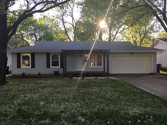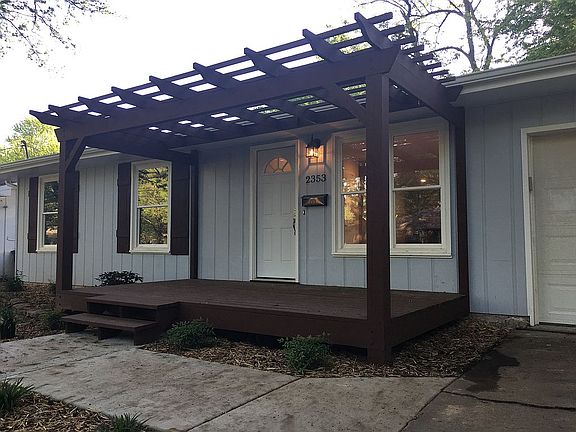 Beautiful and completely move in ready! Open floor plan with impressive new kitchen, 3 bedrooms, 2 fully tiled bathrooms, and two living areas. Completely renovated and updated! Quiet, pretty, walkable neighborhood with generous, helpful families. Easy decision to make this house your home! Your large eat-in kitchen has brand new ivory cabinets with soft close drawers, new counters and thoughtful island and pantry. Your kitchen has new recessed LED lighting and gorgeous lamp lighting over the island, sink and table areas. And all appliances stay!! Includes matching stainless refrigerator, new stainless range/oven, new stainless dishwasher, new microwave. Convenient Samsung stacking washer & dryer and cleaning closet. New single basin sink and new disposal. Modern fresh neutral paint colors throughout, brand new real hardwood floors in warm American Chestnut stain, new doors throughout, creamy white woodwork. Outside, the wood siding is freshly painted in light slate ("Dolphin") blue and ivory trim. New exterior lighting. The solid new front door opens to a large beautiful custom pergola porch -- great for visiting with neighbors or morning coffee. Fresh cedar mulch on 5 generous flower beds surrounding the home. This cottage ranch provides ample open living space with all new light fixtures throughout, built-in shelving, and a grand natural stone and marble hearth fireplace for a warm fire on cold nights. Master bedroom has recessed lights on dimmer and ceiling fan, and the completely renovated master bath has new lights, vanity, and large, tiled walk-in shower. Your home has a new architectural shingle roof, new hot water heater and newer furnace and AC system, new Pella double-hung tilt-in windows, well-insulated attic, pull-down attic access and a new garage door and opener on the 2-car attached garage. Brand new oversized gutters send rainwater to front yard drainage. Completely new pex plumbing system, all new sinks and faucets and connections, and fully-upgraded electrical system and panel. Fireplace is completely cleaned and renovated inside and out and ready for cozy fires. New recessed LED lighting also in living room and family room. Double French doors open onto the new back patio area. Back yard is fully fenced for pets, and there is a solid storage shed on a ramped concrete pad. Mature trees in front and back yards. Your new home is ready for great family memories!
