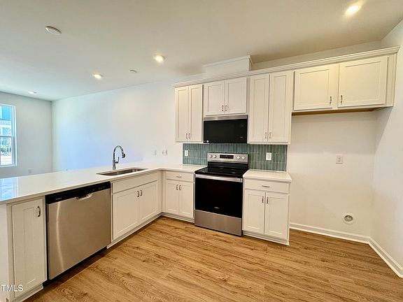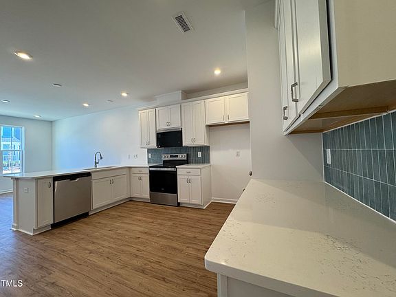 Brand New Townhome is Ready for Move In! The interior boasts luxury vinyl plank flooring and upgraded interior railing. Natural light floods the open-concept living area, seamlessly connecting the family room, dining space, and gourmet kitchen. The kitchen is a chef's dream, featuring Carrara Marmi quartz countertops, sleek white cabinetry, upgraded tile backsplash, and a spacious eating bar island. Take the oak stairs to the upper level, where the primary suite offers two walk-in closets and a modern en suite bathroom with upgraded lighting and cabinetry and a shower with a frameless door. Two additional bedrooms, a full bath, and a conveniently located laundry space complete the upper level. Nestled in the vibrant community of Wendell Falls, this Morgan home is where you can fully engage in exceptional resort-style amenities and embrace a lifestyle tailored to meet your every need. Make this home and start enjoying the incredible amenities and lifestyle offered at Wendell Falls which includes onsite shopping, dining, clubhouse, pools, playgrounds, trails and so much more!