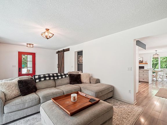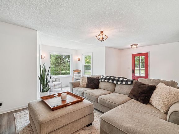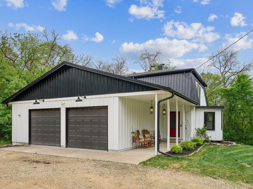 Sought after 2.5 acre wooded private retreat. Beautifully updated modern farmhouse 3 - bedroom 3-bath two story. Kitchen features large center island & stainless steel appliances. The main level also has a cozy gas fireplace. Enjoy peaceful views from the spacious 3-season porch. Invisible fencing is already installed & the property includes a 28x24 pole building. A perfect blend of nature & comfort-don't miss this one!