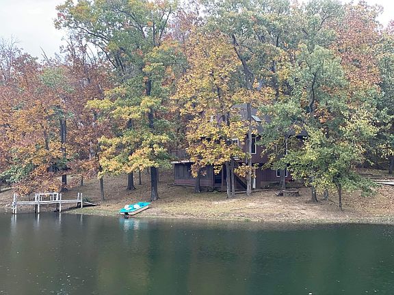 magine your view of water in this serene setting in Green Ranch Estates. Situated on an inland lake at Mark Twain Lake you will find the home that dreams are made of! Three levels of living are found in this cedar sided modified A-Frame, 1800+ square feet of finished living space. Property has been updated throughout. Offering 3 bedrooms, 2.5 baths & a feeling of home the minute you walk in the door. The double flu fireplace is the dominant focal point & center of both the Living Room & lower-level family room, full brick & full of character. You get more than meets the eye; tankless water heater, professionally laid French drains, fresh flooring throughout, granite counters in your kitchen, finished garage/workshop are just a few. Spend your life fishing on the dock, relaxing on the