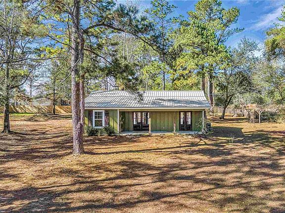 Wonderful custom home built in 2019 on an acre of land! This well-maintained 3 bedroom, 2 bath home offers the perfect blend of charming farmhouse construction and peaceful country living on just over an acre in Robertsdale and NO HOA! With gorgeous pine wood walls and ceilings, stained concrete floors and french doors to welcome you. The primary suite features a tiled shower, incredible barn door, another set of french doors and a pine vaulted ceiling. A new well pump installed September 2025 adds peace of mind. Outside, you’ll find a 30 x 40 concrete slab foundation, ready for a buyer to customize — ideal for a workshop, garage, barn, or additional living space. Enjoy privacy, open space, and flexibility while still being conveniently located near Hwy 59 with easy access to Styx River, shopping, dining, Bucee's and the new Butting USA plant being built. It is one of a small community of homes set behind a private gate. Buyer to verify all information during due diligence.