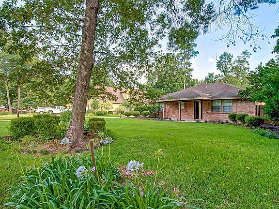 Custom designed 1-story home on over 1/4 acre, heavily wooded lot in Adam Oaks. This Ranch style home has 3 spacious bedrooms & 2 full baths, recent paint, & gorgeous wood-look tile floors throughout the living spaces and wood laminate in the bedrooms. The owner's retreat has an ensuite bath, large closet, and attached private flex room would make a great study, craft room, or nursery. Tons of natural light fill this home from scattered windows. Unique light fixtures throughout. Built-in linen closet near hall bath and bookcase in the study. On-demand gas water heater. Utility room inside. This home is immaculate and ready for the new owners to make their own. No HOA fees or restrictions. Easy access to Hwy69.