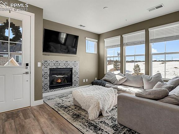 Rare opportunity to find an available unit in the new, highly coveted, Sorrel Ranch subdivision! Located in the popular Cherry Creek school district and just minutes from Southlands, this home offers easy access to shopping, dining, and 470 to easily commute to Denver, Castle Rock, or Colorado Springs. This popular Aiden model is an end unit and has no neighbors above or below. The spacious storage area below adds an additional 125 square feet of useable space and the detached garage is conveniently located right next door. As you enter your new home you'll find a welcoming great room with accent walls, luxury vinyl wood plank flooring, and a gas fireplace. The kitchen is complete with a sit-in island, granite countertops, and stainless steel appliances. The walkout lends the perfect space to enjoy time outside, or take advantage of the community pool and clubhouse. The sizable master bedroom has a walk-in closet and attached bath. The secondary room is perfect for an additional bedroom or office space. If you’re looking for the most modern conveniences, you will love this smart enabled home! From the keyless entry, to the smart thermostat, Bluetooth enabled oven, and tankless water heater, there is a plethora of upgrades. If you are looking for the peace of mind of a low-maintenance immaculately cared for home, look no further. This one won't last and is priced to sell! Welcome home.