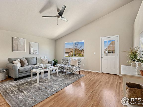 Mountain views in the backyard. Main floor primary bedroom. Don't miss this one. A ton of upside. 4 bedrooms, 3 bathrooms, and approximately 2,500 finished square feet, this cheerful ranch-style home offers space, style, and a setting that feels just right. Corner lot with stunning views of Longs Peak, this home makes a lasting first impression with fresh interior paint, new carpet, and beautiful laminate wood flooring that flows through the bright and open main living areas. Vaulted ceilings and large windows fill the space with natural light, creating a warm, inviting atmosphere from the moment you walk in. Located near parks, schools, and all that Longmont has to offer, this home is your opportunity to own a thoughtfully updated, well-located home with character, comfort, and mountain views.