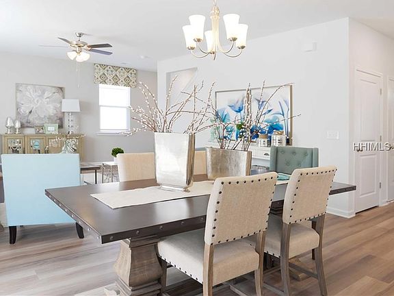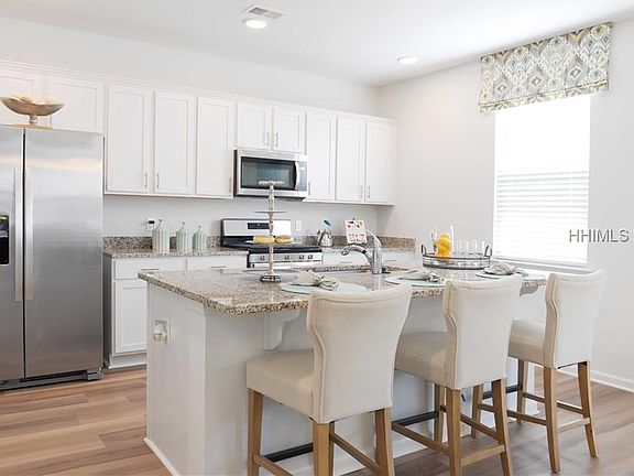 First floor with Durable Vinyl flooring throughout with a floating island topped with granite counter tops. Pristine Open Kitchen is equipped with a Stainless steel gas range, dishwasher, refrigerator & built-in microwave, flex room off of the foyer, Spacious Primary bedroom, an over-sized shower, double vanities & a walk-in closet! Pictures, photographs, colors, features, and sizes are for illustration purposes only and will vary from the homes as built. Virtual Appointments Now Available!