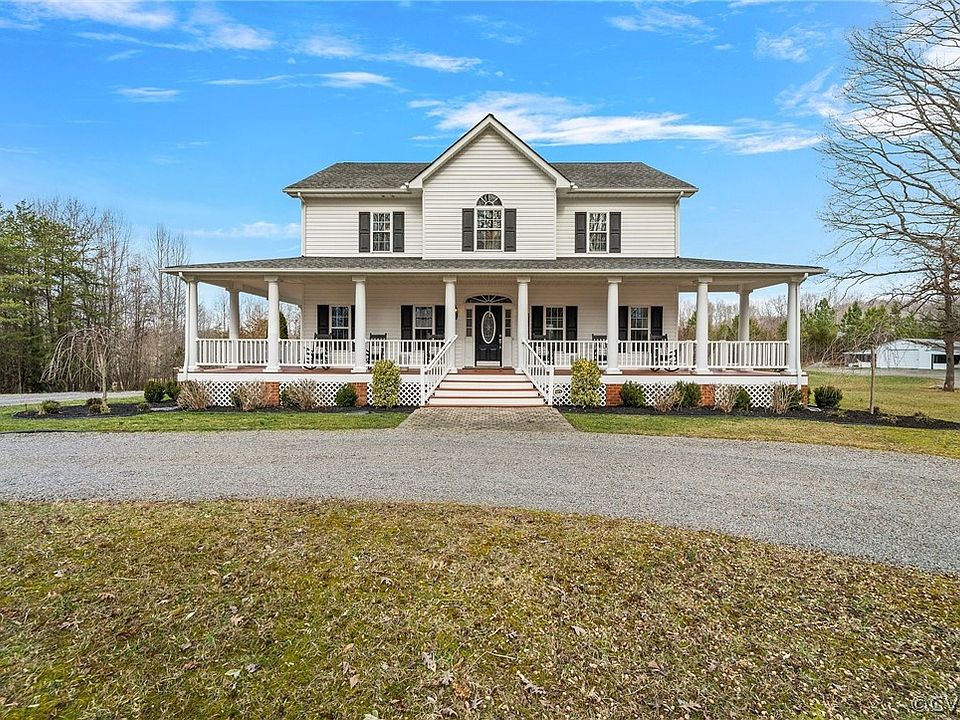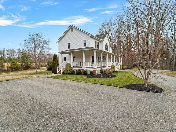 Amazing home perfectly secluded on this 3 Acre Lot... just 10 minutes from Short Pump! The exterior starts with a circular drive that leads to a beautiful 2-story Farm House with a full 12-column Wrap-around Porch! There are apple trees, blackberry bushes, raised garden beds and huge patio for outdoor entertaining. There are 2 shed style outbuildings, 24x12 with power and HVAC, the second a 10x12. Also, a new 42x40 pole barn currently set up as a kennel with power and water...easily turn this into a garage or shop. Interior offers hardwoods on the 1st floor, glass French doors to the office/living room, amazing kitchen w/new quartz countertops, island w/cooktop, convection wall oven and microwave, new farm sink and faucet, a pantry and is open to the family room with access to the massive covered screened porch. The 1st floor is also home to a formal dinning room, and mud room w/laundry and 1/2 bath. 2nd floor offers a massive Owners Suite with a closet that's sure to impress anyone, as well as a luxurious bath w/double quartz vanity, shower and soaking tub. 2 more large Bedrooms and another Full Bath with quartz vanity and linen closet. ** XFINITY HIGH SPEED INTERNET!! **