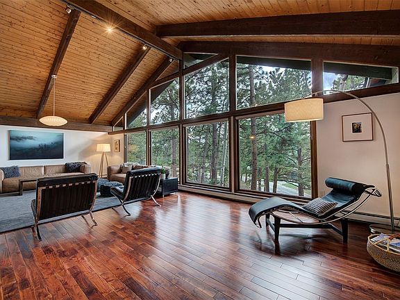 A large foyer and bright living area cheerfully welcome you. The spacious formal living room with vaulted, beamed, tongue and groove ceilings is adorned with a two-sided stone gas-burning fireplace that warms the entire room. The other side of the fireplace faces the formal dining room large enough for your largest gatherings and is sure to be the room where your family will head when they come home. The kitchen with center island features granite counters, gas cooktop, stainless steel double ovens, and a side-by-side stainless refrigerator any cook will love. The laundry/mud room and garage are smartly located near the kitchen. The comfortable and casual family room is a place for the whole family to gather informally after dinner. The spacious master suite is upstairs and offers a relaxing haven or personal retreat. Two bedrooms are on the main level and two additional bedrooms are on the lower level. The large stately pine trees surrounding the home create a beautiful setting, the private back yard is fenced for kids or pets and the mature gardens will explode with color in the summer.