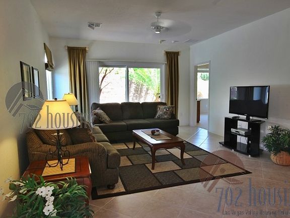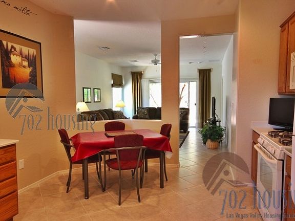 This bright and airy 2 bedroom Single Family Home is the only property among our Henderson NV furnished rentals that is located in the beautiful Anthem Highlands 55 + Community. This location is perfect for those seeking a more quite and relaxed environment. Its away from it all, yet only a short 20 minute drive to the heart of the Las Vegas Strip! The Anthem Highlands community hosts rolling hills, upscale landscaping features, trails, parks, golf and much more. A wide spectrum of shopping and restaurants are within a 2 mile radius. McCarren Airport is about a 15 minute drive.The house is a single story home with 2 bedrooms and 2 full bathrooms. As with all of our Henderson NV furnished rentals, this property is fully furnished and turn-key ready. All housewares, kitchenwares, linens and towels are included for your convenience. Enjoy a full size kitchen with all appliances available for use, just like at home. The living Room is open to the kitchen area with tile flooring throughout. The two bedrooms are completely separated, providing maximum privacy for both rooms. The Master Bedroom has a King size bed and 24 Flat Screen LED TV. The attached Master Bathroom has a double sink and oversized walk-in closet. The 2nd Bedroom has a Queen size bed and a 24 LED TV. There is an attached garage with one space available to park a car. There is a full size washer and dryer as shown in the photos.All bills are included in the monthly rental rate, which include electric, gas, cable tv, and high-speed internet with WIFI. No need to spend time worrying about setting up bills in your name, just bring your suitcase and start living!No Pets and No Smoking are Permitted at this property.You may view all of our current availability at www.702housing.com/availability