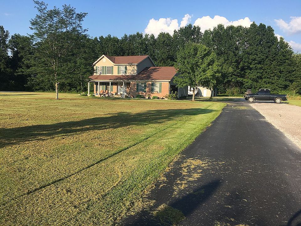 Two story home tile floors down stairs wood burning stove beautiful pond … 30x50x10 barn with concrete floor and electrical service .. 30x50x12 detached 3 car garage
