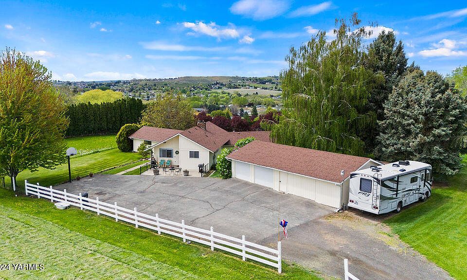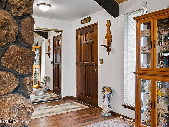 Beautifully updated and maintained 3000+ sq ft home sitting on 2 separate parcels totaling 3 acres. Updated kitchen with plenty of storage, large living area with gorgeous, exposed beams, multiple fireplaces and a wonderful primary suite. This Selah estate sits is located in a sought-after location with room for animals and toys. A detached shop offers additional storage and extra parking is an extra benefit. Installed solar panels create an advantageous electricity cost of just $8 a month 8 months out of the year. Sitting back off of the road in a secluded location the property has plentiful established fruit trees and a private serene feeling. Set up your private tour now!