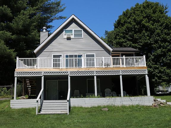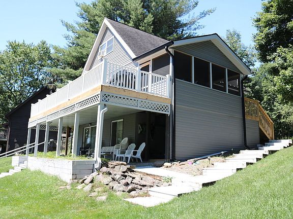 STUNNING LAKE VIEWS! Not to mention an awesome lake chalet home! This picturesque setting is assented by the charming home its self! Traditional lake chalet design with big windows and views from everywhere, 3 bedrooms, 3 full bathrooms, finished lower level, screened porch and large deck overlooking the lake! So many great upgrades: new vinyl siding, new windows, new sliding door, new screened porch, new Trex dock, new seamless gutters, new driveway and fully furnished!