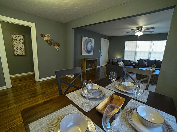 Amazing renovated brick home near the plaza and fair grounds. Original hardwood floors flow through the entire house. Electrical and plumbing are fully renovated. All appliances are included, including refrigerator and washer and dryer. fenced back yard is great for kids or pets. Quiet neighborhood with quick access to downtown and I-44. Two car garage is a rare find in this area, great for keeping vehicles out of the weather, and additional storage space above. Pet's are ok with additional deposits and/or fees. For best contact please text Tim House is currently occupied, do not disturb tenant, showings will be arranged only on weekends with advanced notice. House is fully furnished, however rental price of $1450 does not include furnishings. We are converting from an Airbnb, all furnishings are able to stay however additional lease terms/rent will need to be negotiated, or furnishings can be purchased outright. Monthly cost for all furnishings is $1700. $200 of deposit will be kept for cleaning fee, the rest is fully refundable at moveout. Pet Deposit/Rents and pet cleaning fees are separate and will be discussed individually.