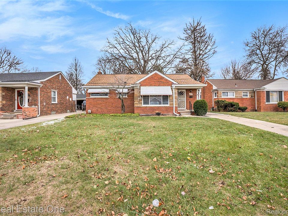 Welcome Home! This all-brick ranch offers 1,036 sqft of living space, featuring 3 spacious bedrooms and a full bath upstairs, plus a charming sunroom that overlooks your deep, expansive lot. Original hardwood floors are waiting to be uncovered beneath the carpeting, adding character and potential to the home. The kitchen is generously sized with plenty of storage space, perfect for culinary creativity. The partially finished basement offers a large open area with a bar, as well as separate laundry and furnace rooms. There's also an additional full bathroom, with work already begun on the shower—ready for you to finish and customize to your taste. Step outside and discover an oversized, fully fenced yard, ideal for outdoor activities, relaxing, or entertaining guests. This home has great bones and is waiting for you to make it your own. Recent Updates Include: New Refrigerator (2024),