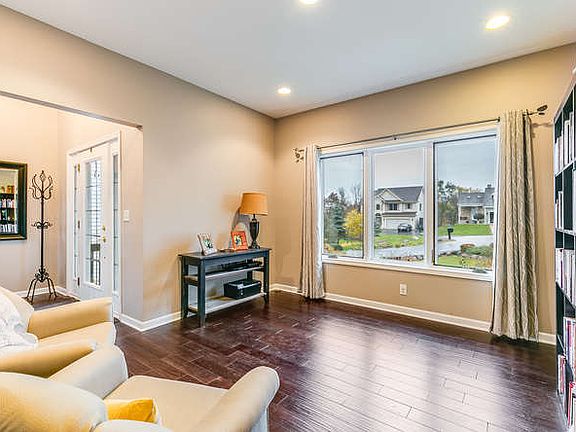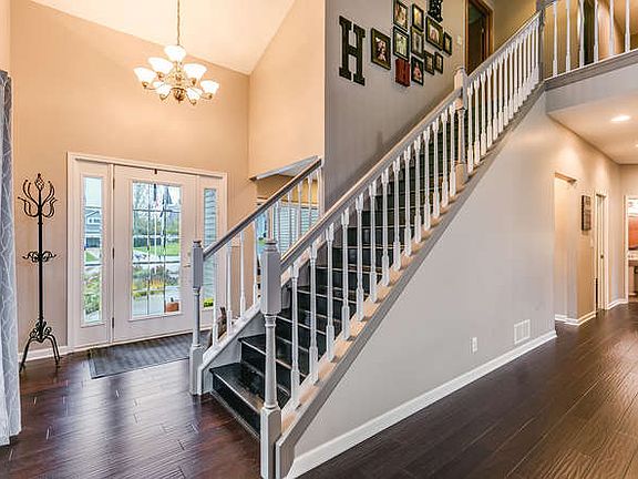 Move in ready. Spacious, open floor plan. First floor master suite, vaulted ceilings & a beautiful natural fireplace are a few highlights. You'll also love the wood floors & wood tread staircase. First floor mud room & a second floor laundry room that includes the washer and dryer. The walkout lower level is completely finished with a huge rec room, full bath & 5th bedroom. Enjoy the outdoor living space on the deck or patio that overlooks a tree line & neighborhood park. This home has so much to offer & is located on a quiet cul-de-sac. Excellent schools. Check out the photos.