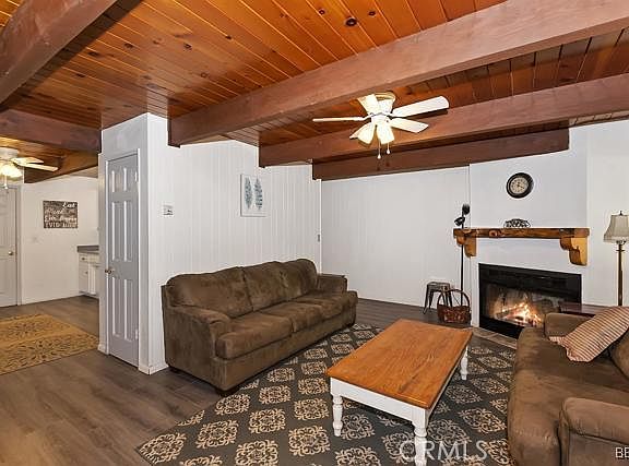 Adorable two bedroom, two bath Gambrel style cabin close to downtown Crestline! The first level is an open concept with gorgeous wood ceilings. The living room has a fireplace with a wood mantel for those chilly nights and a deck looking out to your front yard. The spacious kitchen has room for dining. The first level also has one bedroom and bath. Upstairs has the second bedroom with a deck overlooking your front yard, the second bath and another kitchen that leads onto another deck with stairs down to the back yard. The upstairs could be a private suite with it's own entrance. All of this and a fenced yard plus room for RV Parking!