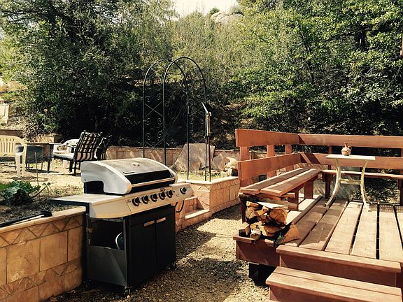 Beautiful home in the pines just 1.5 hours from Phoenix! The main house is loaded with sleeping areas and a great large kitchen with beautiful hand cut stone counters, updated appliances, and lots of wood cabinets! Upstairs has a large loft for lots of guests and a private bathroom, downstairs master and main floor full bath, grandfathered outhouse, and guest house you can use for your guests or income with this established Air b&b rental averaging 1300-1500 a month! Bring your hot tub for the new trex deck, take a relaxing sauna, or brew some beer or wine in the custom wine cellar! Lots of storage and a oversized 2 car garage with oil pit! Property is all run for rain collection and propane generator but has Aps, its own well, and gas furnace for convenience! Lots of flat space for parking and toys! Extra storage in the underground containers.... extra lot for expansion too! Great investment property, multi-family getaway or company retreat! Insulated and gas furnace for year round living, complete property permitted and all work permitted for no county issues. Biz permits will transfer. Realtors welcome! 3% to you for a buyer!