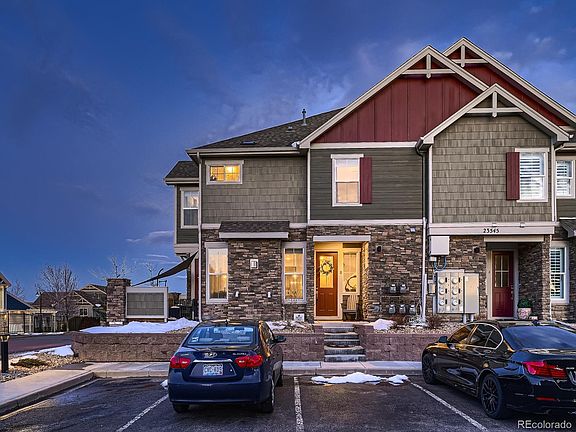 Welcome to Sorrel Ranch! Located in the Cherry Creek School District, this stunning end unit was built in 2020 and has been well maintained so you can own a next to new home! This Lokal Homes Drew model features a patio space off of the breakfast nook, one of the few models that offers this feature. This unit is also conveniently located across the street from the pool and the playground for convenient access. The home features several upgrades including built-ins, a kitchen island and ceiling fans on both levels of the home. Enjoy matching granite counter tops in the kitchen and bathrooms as well as cabinetry and other finishes which ensure a seamless flow throughout the home. The ample closet, storage spaces and pantry space provides that storage is not a concern, coupled with the convenience of having the in-unit laundry room located on the second floor. The home includes a security system as well as a video doorbell and the capability to lock the doors and raise and lower the garage with the use of an app. The property is close to the Southlands Mall shopping area as well as other community amenities including walking and biking trails. The complex also offers ample parking for guests. The HOA fees include water, trash, insurance, as well as snow removal, among other expenses. The seller is offering the opportunity to assume their loan at 2.375%! Schedule your showing today!