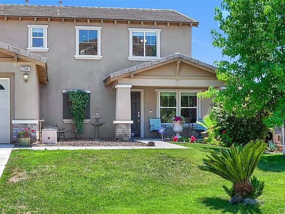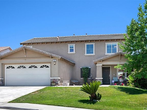 Located in the heart of the Canyon Heights community, this Spanish style two story home is just looking for a new owner to love it. The 4 large bedrooms, 3 full bathroom home includes one downstairs bedroom and bath. Property is walking distance from parks, elementary school and close to major roads, so is just a few minutes drive from the I-215 or I-15 freeways. The home has a spacious open floor plan, with plenty of room for entertaining, double pane insulated windows, clean neutral finishes, spacious kitchen, large pantry for storage, tile counter tops, and separate family room. There is easy access to back patios for entertaining and family gatherings. The upstairs of this home offers two big secondary bedrooms, full bathroom and a privately tucked away master bedroom suite with two sinks, separate shower and soaking tub, walk in closet with views of the hills. Lot is fully landscaped with a covered outside patio cover, all with automatic sprinklers to make maintenance a breeze. Enjoy the two car garage, giving plenty of room for cars and storage.