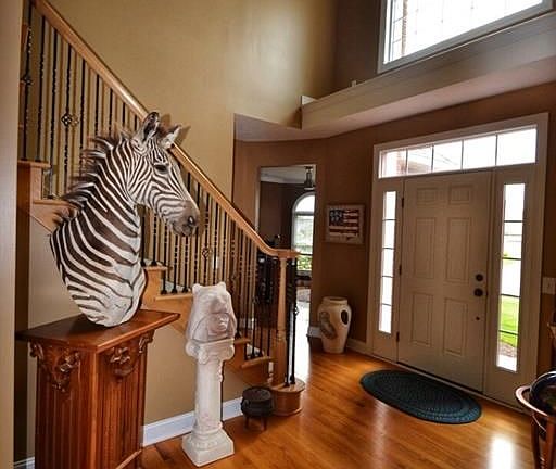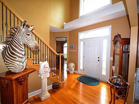 Abundance of curb appeal with this lovely home in St. James. Brick front is stunning on this fabulous colonial featuring four bedrooms with first floor master suite, and 2.5 baths. Built in 2007, the home boasts a beautiful open kitchen with birch cabinets, solid surface counters, corner pantry, all appliances, and cabinet lighting above and below. Wonderful newer kitchen lighting over the center island. Great Room with corner stone fireplace has magnificent 18' ceilings, wall of windows, and eating area with rear doors leading out to gorgeous, private rear yard with stamped patio,and back drop of trees.There is a first floor master suite with double sinks, jetted tub, separate shower, and large walk-in closet. Dining room on the first floor, in addition to an office/den, laundry, and half bath.Stairway to second floor leads to a catwalk overlooking the Great Room. Also on the second floor are three bedrooms, and a full bath.One of the bedrooms has private access to the full bath, and two of the bedrooms have walk-in closets.The first and second floor have zoned heating. Finished workshop in the basement with built in shelves, overhead dust collection system, and glass block windows.Three car side load garage. Recent updates: All interior walls re-painted, vinyl siding installed on three sides of the house, crown mold and trim in dining room, and molding above fireplace. Well maintained and a pleasure to show.