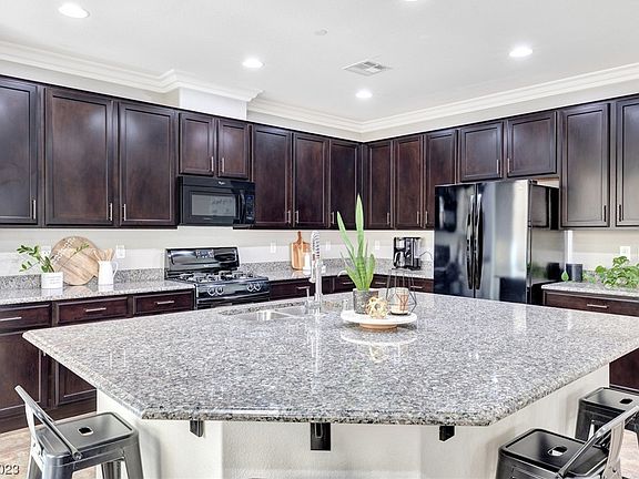Welcome HOME! No expense spared, this home ft. one of the best floor plans in Inspirada - WITH potential for a downstairs bedroom! Layout ft. popular combined kitchen/living room, a front downstairs room (works well separated from other areas for noise & receives natural light), & all additional bedrooms upstairs. Kitchen ft. massive oversized island which boasts an oversized WALK IN PANTRY with organized built-ins for storage. Downstairs ft. crown molding throughout. Upstairs has a versatile layout with a loft space. Elegant double french door to the spacious primary suite, w/ spa-like primary bath & separate tub/shower. Guest bathroom ft. a double sink & granite countertops. Laundry has a separate room upstairs. Entry is warm & elegant with paved entryway & access to guest parking on the street. Inspirada is well known as Henderson's MOST FAMILY FRIENDLY community due to its numerous parks, schools, community swimming pools, low-speed roads perfect for golf carts and Sunday strolls.