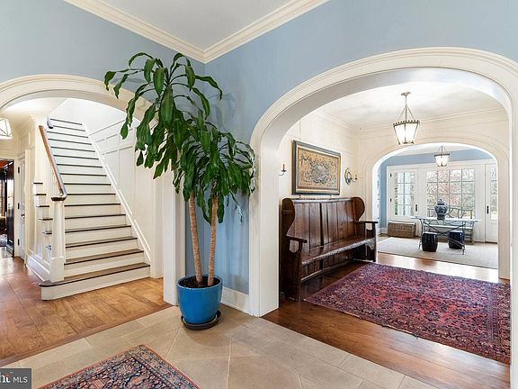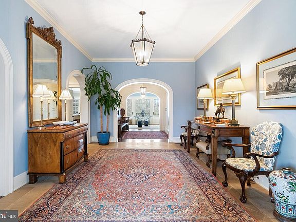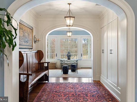 Beautifully sited in the foothills of the magnificent Blue Ridge Mountains, this exquisite country estate encompasses over 116 acres of lush pastures, verdant woodlands, and brilliant perennial gardens. A long winding driveway past board-fenced paddocks and across a picturesque stone bridge leads to a stunning 13-room colonial in a storybook setting. Meticulously renovated with uncompromising quality, superbly detailed, and beautifully appointed, this extraordinary home offers privacy and seclusion in an idyllic setting. The main residence includes approximately 6400 square feet of spectacular living space with 5 spacious bedrooms, 5 fabulous baths, and a luxurious Primary Suite to please the most discerning Buyer. The impressive grand Foyer sets the tone of elegance, sophistication, and warmth, capturing views from the front to the rear façade overlooking the manicured grounds. The arched doorways, custom millwork, and extraordinary antique lighting fixtures are reminiscent of an era of historic beauty and refinement. The numerous windows and glass-paned French doors, bathe all the rooms in natural sunlight. A charming formal dining room enjoys French doors accessing the front covered stone porch. Adjacent is a fabulous handsomely paneled Library with wood burning fireplace, custom bookshelves, and multiple French doors and windows. Step down to a stunning Family Room boasting beamed and vaulted ceilings, multiple oversized windows, and French doors leading to a wonderful stone terrace and pergola. Completing this wing is a gourmet country Kitchen, suitable for a professional chef. The counters, center island, and backsplash are all of Carrera marble, the appliances are top-of-the-line, and the custom cabinets extend to the ceiling for ample storage and organization. Crystal chandeliers and other designer lighting fixtures are prevalent throughout the house. The west wing of the main level includes a spacious bedroom suite featuring a beamed and vaulted ceiling, plus a full tiled bath with marble-topped sinks and walk-in closets. At the end of the main Hall is a lovely Living Room/Study with marvelous windows overlooking the rear terrace and pergola. It accesses the Primary Bedroom Suite which is a masterpiece of design and luxury. The marble bath features Carrera marble sinks and designer tile flooring, the glass-enclosed shower is an amazing spa and the huge bedroom includes a sitting area for the utmost in relaxation. Walls of windows create a light and airy feeling and offer panoramic views of the beautifully landscaped grounds. The upper level is completely renovated and decorated with impeccable taste. It includes three charming bedrooms and two new full-tiled baths that feature marble countertops. The lower level consists of an additional 3,208 square feet of space, with an exercise room, laundry room, and recreation room. There is enormous space for storage and utilities, and a walk-up stairway for easy access from the exterior. Gleaming wood floors grace the entire main residence and marble and stone floors highlight the baths. High ceilings, handsome crown moldings, walls of gorgeous windows, and French doors showcase the elegant rooms, creating an absolutely warm and charming ambiance. Everything has been thought of to create a welcoming home for family and friends, for pure comfort, quiet relaxation, or gracious entertaining. Private and secluded, the fabulous pool is surrounded by stone terraces and waterfalls from the side stone wall, creating a peaceful sound. Sweeping lawns and glorious mountain views, complete this idyllic setting. The equestrian amenities include a 10-stall stable, board-fenced paddocks, and a two-bedroom staff house. The 116 acres are in an agricultural district but still have the potential for tax credits or subdivision. Ideally located in the renowned Piedmont Hunt Territory, the historic village of Upperville is just 3.8 miles away. Listing provided by: Thomas and Talbot