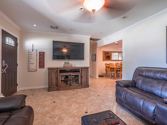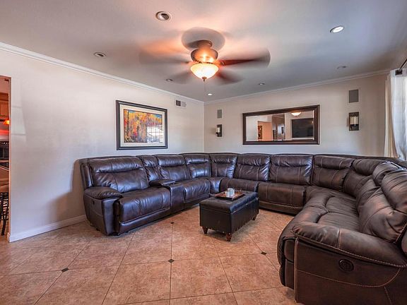 Fabulous one story ranch smart home. 3 bedrooms, 1.75 baths with enclosed patio room & office with built-in desk. Most of the home has been redone inside and out. Upgraded new kitchen cabinets with newer appliances: Stove-top, microwave & oven, granite counters with breakfast bar & and designer tile back splash. Spacious dining area. Newly remodeled and upgraded bathrooms. Tile floors in living room, kitchen, dining and bathrooms. Bedroom all have wood like surface flooring. Enclosed patio has recessed lighting and hardwood floors. House has newer windows, stucco and roof. Entertainers back yard with sparking grey bottom pool, waterfalls and grassy area. RV access and more! Large lot 8000 s.f approximately. Must see!