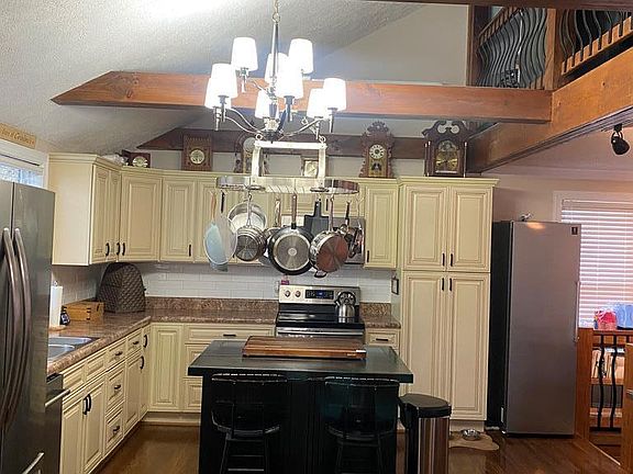 Such a sweet house that features a unique spiral wrought iron staircase that accents the staircase leading to the upstairs bedrooms with gorgeous hardwoods, and 2 extra storage closets. The main level has gorgeous exposed beams that are modern, yet elegant for cozy dinner nights. The basement is all finished provided extra livable space. A place has been added in the back for a building, garage, or she shed with electricity and water ready for hook up.