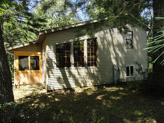 Secluded & Private. 2 bedroom, 1 bath cabin or year-around home on 10 wooded acres. Manicured trails, wildlife, atving & hunting on your own property. The 1440 sq ft cabin/home is well built with nice touches throughout. Open concept with spacious living room & large wood stove with beautiful stone accents. Sizable kitchen with custom built cabinets & dining area, all appl incl. Vaulted ceiling with tongue & groove knotty pine. 3 season porch. Forced air furnace & cent air. Large master bedroom with jetted tub & access to the deck overlooking the wooded acreage. Partial basement with egress windows that could be finished for additional bedroom/family room, etc. Lower level also has laundry and a half bath. Seller is the builder & would build a garage for the buyer at an agreed upon price.