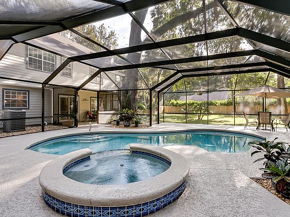 This pool home sits on a beautifully treed corner lot in a wonderful riverfront neighborhood. The owners took great care & planning when remodeling & modernizing this home. New kitchen & baths with granite countertops, upgraded lighting, tile, crown molding, & new doors. Newer screen pool enclosure, pool heater & pump, patio, tankless water heater, & more. A community with no CDD fees, a community pier, & nature trails, your oasis awaits!