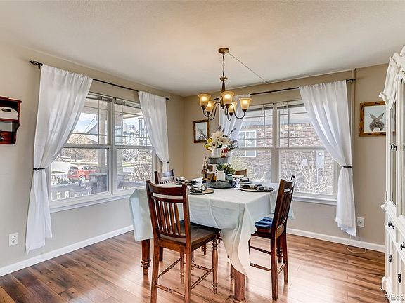 This beautifully updated 4 Bed/ 4 Bath Cross Creek home is warm, welcoming and backs to 2-acre ranchettes - giving you panoramic views and privacy! Welcome to the open floor plan with durable wood composite floors and fresh paint. Open flow from dining room into every cook or entertainers dream. Huge sunny eat-in kitchen with gas cooktop, double-oven, huge corner pantry and durable Corian counters and island! Curl up in the family room featuring gas fireplace with custom river rock surround and mantle. Check out the beautiful matching wood valances. Updated powder room on main level. Upstairs find a funtional loft space and 3 spacious bedrooms with wonderful ceiling fans and views! the Master Bedroom boasts vaulted ceilings, a huge closet with window and updated 5 piece bath with radiant heat wood-look tile flooring and garden tub. Full Jack & Jill bath between 2nd and 3rd bedroom. The bright and cheerful basement is finished with a flex space, hobby space/office, modern 3/4 bath and 4th bedroom w/ French doors and platform bed. The garage is dry-walled, has new wifi enabled garage door opener and storage space. Large fenced yard has sprinklers front and back, landscaping, garden beds, a pergola with cover, a firepit and expansive country views! Quiet cul-de-sac with fantastic neighbors. Convenient location just 10 minutes from Buckley, 15 from Southlands or DIA and 2 turns off of E-470! Welcome Home!