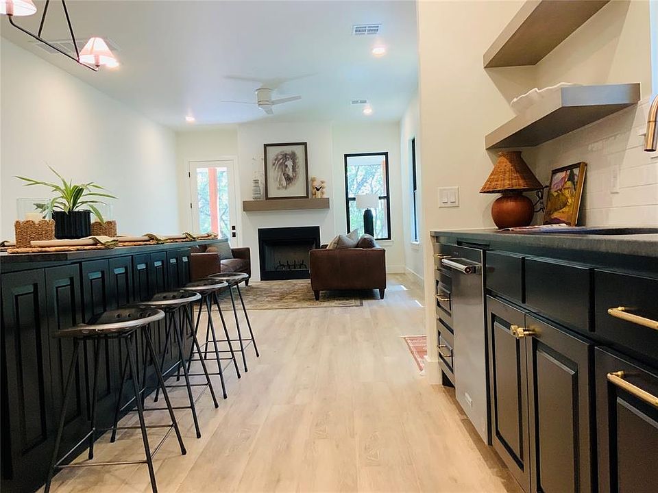 Outdoor showerHigh-end finishesOpen floor planSpacious master bathroomDouble vanitiesHuge walk in showerCustom stucco fireplace