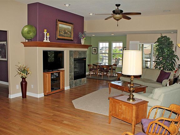 You will fall in love with the wonderful location of this beautiful home that backs to open space and Red-tailed Hawk Park. Come home to the beautiful hardwood floors on most of the main level and relax by the fireplace and entertainment center wired for surround sound in the living room. Enjoy meals with your family and friends in the lovely dining room after cooking in the beautiful kitchen with granite countertops with Granite Shield, 42' cabinets with crown molding, under cabinet lighting and a pantry. Escape to the master bedroom with quiet park views, vaulted ceilings, a walk-in closet and a master bath with two sinks. Hunter Douglas thermal shades throughout too. Entertain your friends in the family room of the finished basement with a wet bar and built-in bookshelves, plus an extra bedroom, bath and office. Relax on the enlarged Trex deck and watch deer play in the open space.