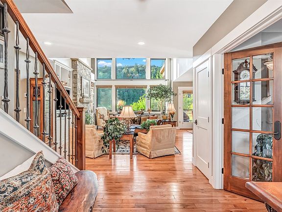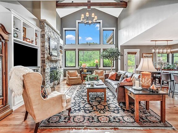All paved roads lead to this stunning custom home in Stagecoach, Colorado! No details have been missed, from the exterior natural wood siding and stucco to the professionally landscaped yard and outdoor seating area with a gas log fireplace and gorgeous high-end finishes throughout the home's interior. Once you enter this home, you are welcomed by warm natural light, attractive hardwood floors, a gas log fireplace that doubles as a furnace that heats the entire house, and designer lighting, including recessed and accent. The gourmet kitchen features an induction cooktop with a retractable vent fan, double oven, large island with seating, barn sink, slab granite counters, and custom Fedewa soft closed cabinetry and pantry. The living area features exposed beams, built-in shelving, and soaring vaulted ceilings. The main floor primary bedroom suite enjoys a large bathroom with a custom Fedawa vanity, two sinks, a tiled shower, heated floors, and an expansive walk-in closet with Elfa custom cabinetry. The second bedroom is currently an office and enjoys two windows, a closet, and a double-door entry. The upstairs loft opens to the lower living space and is presently a third bedroom and seating area for overnight guests. Outside, you will find a professionally landscaped and fenced yard on a drip water system. The backyard has access to one of the multiple walking paths in the neighborhood along a lovely stream. In addition, there is a storage shed with plenty of room for your lawnmower and gardening supplies. This fantastic home is within minutes of Stagecoach State Park and Reservoir, where you can enjoy boating, paddle boarding, kayaking, hiking, biking, fishing, and cross-country skiing. It is also located just minutes from Oak Creek for shopping and delicious restaurants and only 25 minutes from world-class skiing at the Steamboat Ski Area. This home is perfect as a primary or second home for the outdoor adventurer in us all.