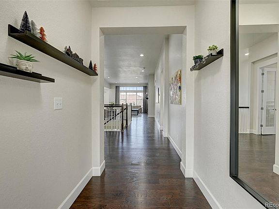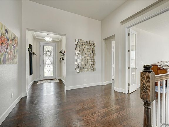 Perfectly priced Meritage Ranch home, in the desired Inspiration (Rocking Horse) neighborhood. Bright, upgraded Gourmet kitchen features Silestone counters, enlarged island with eat-in counter space. Upgraded cabinets (expanded, two-tone with soft-close drawers and doors, and rollout shelving in lower cabinets), double oven , gas cook top with beautiful backsplash and hood, built-in microwave, and continued prep space into the dining area conveniently located and large enough for your family gatherings. With an open floorplan, the expansive great room features a custom fireplace with floor to ceiling surround. Located off the great room is the oversized primary suite and professionally redesigned bath, with spa-like walk-in, zero-entry shower, heated tile floors throughout, and extra storage/cabinet space. To complete this suite there are two walk-in closets. The large bonus room off the entryway is perfect for work from home, schoolwork, or sewing. Tucked in the front of the house are two spacious secondary bedrooms that share a full bath with double sinks and separate shower/toilet area. The laundry/mud room has been redesigned and features a sink, tons of storage and hanging space plus a bench. Don't miss the unfinished garden level basement, currently fashioned as a workout area, ready for your creative finish. April Aire Whole House Humidifier. Owned 10kW solar system is designed to provide 100% of electrical needs for the current occupants. Your electrical usage may be different. The large back deck opens to a professionally landscaped backyard, a great outdoor space! Don't miss this incredible home; it won't last long!