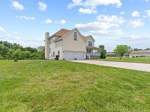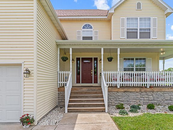From the cozy front porch to the new deck in back, this lovely two story home is one you'll want to see. The main level features formal living, formal dining, family room and updated kitchen. Hardwood flooring is in the living and dining rooms. The kitchen has newer white appliances, granite counters, new painted cabinets and a pantry. Upstairs are 3 bedrooms, two full baths, the laundry room and an office. Downstairs in the basement is another family room, plus a full bath and a 4th bedroom. Other special features include newer siding, newer roof, wood blinds, two gas fireplaces, a whole house water filter, and a heated garage. All of this on 1.3 acres that backs up to woods and is in East Bluff of Riverfork Ranch subdivision.