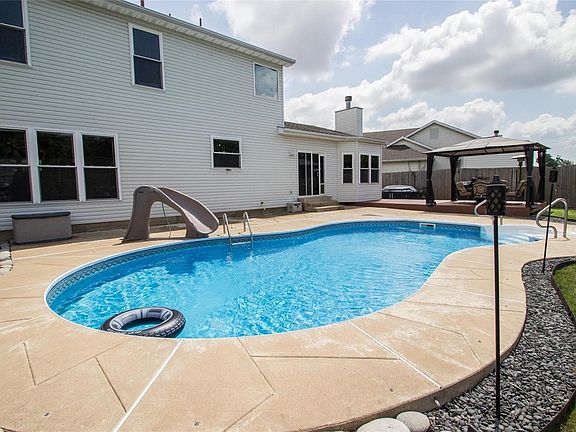 Welcome to this well maintained home in the sought after Eagle Pines Subdivision located close to highways 70, 364 & 94 - great location! Enter into the open floor plan with 9 foot ceilings, tons of natural light and two fireplaces - one gas and one wood burning. You will appreciate this smoke free home with over 2500 square feet of living space and an in-ground pool with fenced back yard - this home will meet all your needs. Enjoy the big kitchen with huge bar island, plenty of storage space and separate breakfast area/eat in kitchen near the bonus Hearth Room. The large Master Bedroom has tall vaulted ceilings and the Master Bath features a double sink, Lasco Tub & separate shower.There is also a separate dining room, over sized 2 car garage & partially finished lower level with 8 foot ceilings and a rough in for a 4th bathroom just waiting for the new owner to add their final touch. All of this is topped with a new 30 year Architecture shingle roof.
