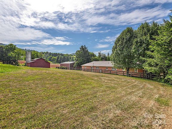 Unbelievable country living at its best in the Riverside Community of Crabtree featuring 2 acres of beautiful, flat, and rolling land w/some pasture, creek, views, great shape working barn, immaculate 36x32 metal building w/electricity&concrete floor, and finally a beautifully updated 3BR/2BA farmhouse w/attached 2-car garage and new roof in 2023. The home boasts beautiful hardwood flooring,a spacious family room/den w/fireplace,and a separate living room that opens to a wonderful and inviting covered front porch,spacious dining area,and an updated kitchen w/granite countertops, ceramic flooring, SS farm sink,& SS appliances.The main floor also includes owners bedroom w/newer carpet and an updated owners bath with shiplap accents,granite top vanity w/vesssel sink,ceramic floor, and tile tub/shower.2 guest bedrooms w/newer carpet and updated hall bath complete the one-level living home. Enjoy life in the country but only 20 minutes to vibrant downtown Waynesville and 10 minutes to I-40.