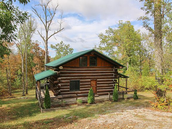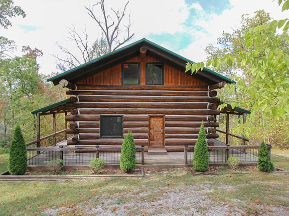 There are log cabins & then there are LOG CABINS! This waterfront log cabin separates itself from the typical log cabin we tend to love at the lake! It was custom built by its current owners using hand selected, massive poplar logs & more than a mile of rebar! The metal roof means low maintenance as it covers the wrap around porch offering the cabin a great deal of protection from the weather. Upstairs you'll find 2 separate bedrooms with large viewing windows, built-in bench seating & roomy closets. The main floor offers a full bath, bright living room & a kitchen that's open to the dining area. The spiral staircase adds a touch of whimsy as it leads you to the finished, walkout basement the owners call their master suite. There you'll find a spacious sleeping area, full bath, laundry closet & an extra room that could be used as a walk-in closet, office or extra sleeping room for guests. Out front there's plenty of off street parking available & even room for a garage or shed. Out back, there's a large deck & a covered patio area for extra outdoor living space. The level backyard provides a great spot for a fire pit, Cornhole tournaments & a place for the kids to play. To the left of the backyard's tree line, you can easily create a gentle access path that will lead you right to the dock string below the property. There's also some room above the redline to improve that view of the lake. This property is located near the Cave Creek & Sandy Beach areas of the lake by boat & about 15 minutes from Leitchfield by land. Dock possible with COE approval. Sellers are encouraging your offer so don't let your family miss out on this truly unique, one of a kind, log cabin & call the listing agent today!