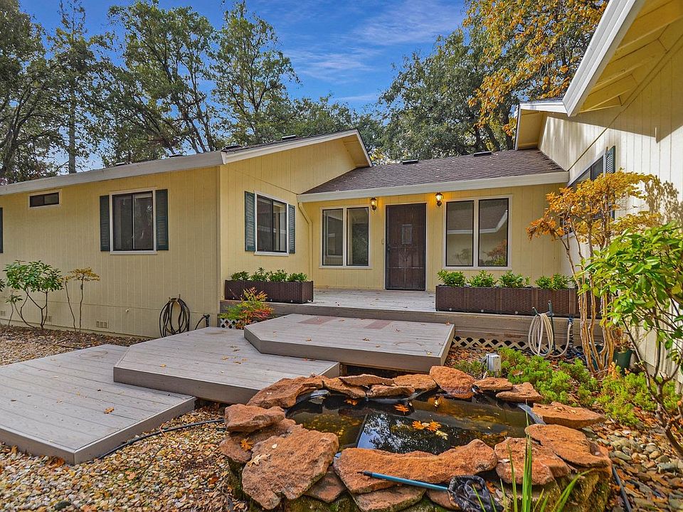 LOOK AT THE PRICE PER SQFT-$161.00 ONE OF THE BEST DEALS IN AMADOR COUNTY. A picturesque country home on a quiet,1 acre lot.Over 3000sqft,3(4)bd/3.5 bath home plus mother-in-law/office with its own gate, entrance and driveway. As you roll up up the main driveway you will notice the entire 1 acre is fenced so your animals will be safely enclosed. Property is studded with healthy oak trees that create a natural canopy, keeping it cool in summer. The front of the home has a beautiful floating trex deck walkway and bridge to the front door. The open beam vaulted ceiling in the large living room is warm and welcoming, along with the wood burning fireplace for those cozy winter nights. Kitchen has updated appliances, workplace island, breakfast area, granite countertops and oak cabinets. Huge game room/bonus room with a proper bar and gas fireplace. Home has large bedrooms with great closet space. Laundry room located off the kitchen with a half bath attached. Fantastic bonus features include a carport for boat storage or extra parking, whole house generator, city water, and a walk through workshop to the right of the garage. Underneath the house has a wood platform and shelving for possible wine/hobby storage. Plenty of space for RV parking. This property looks and feels AMAZI