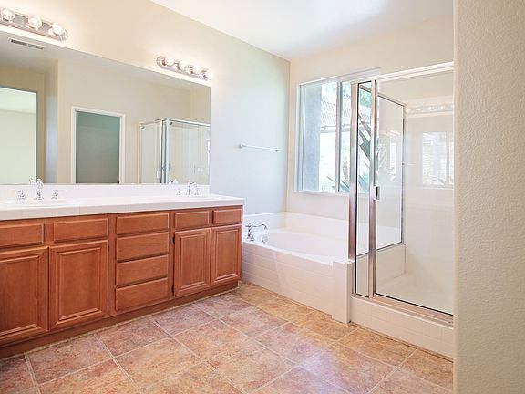 This Corona single story corner lot home offers a three car garage, a fireplace, kitchen island with a breakfast bar, a double oven, a walk in master closet, a master bathroom with a separated step in shower and tub, dual sinks and a sitting vanity. You can instantly unlock and tour this home any day of the week from 6am to 9pm, no appointment needed. Plus, every Opendoor home comes with a 90-day buyback guarantee. Terms and conditions apply.