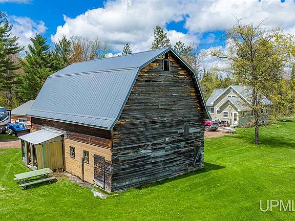 Seller requests all offers by Thursday 06/01/2023 at 10 pm. "Eventually, all things merge into one, and a river runs through it."- Norman Maclean. As Kyllonen road ends, it merges into this beautiful homestead with approximately 81 acres, around a mile of the West Branch of the Sturgeon River with prime trout fishing, rolling terrain, hardwoods, fields, apple trees, and peaceful privacy. From the hardwood knoll behind the home, the terrain rolls down to the river. This property is an absolute dream for the outdoor adventurer, hunter, fishing enthusiast, hobby farmer, or anyone wanting to appreciate countryside beauty. The river is unbelievable. Swimming holes, twists, turns, sand bars, gravel beds, pools, ripples of fast current, and shade trees combine for endless beauty. The home is set on an expansive and open yard with a large barn, and a few outbuildings including the garage and sauna. The home has been remodeled down to the studs in almost the entire house in 2006/2007. Furnace, hot water heater, and the well pump have all been replaced in the last 1-2 years. The front entry way opens to the upstairs steps and your living room. Each floor has a full bathroom, the main floor has a large bedroom with an open closet. Potential third bedroom available in the loft area. Thimbleberries, raspberries, apple orchards, the river system, mixed field areas, oak, maple, cherry, ash, spruce trees, and the rolling terrain all combine to make this property so unique and special. Potential for future land splits for the investment minded buyer. NOTICE: All information believed accurate but not warranted. Buyer recommended to inspect property, verify all information & bears all risks for any inaccuracies. Tax information is subject to change. Taxes are not 0. All measurements (acres, lot size, square footage etc)are estimated. Sellers may have audio/video recording devices present on property. By entering orbeing on property, Buyer and Buyer’s agent consent to being recorded.