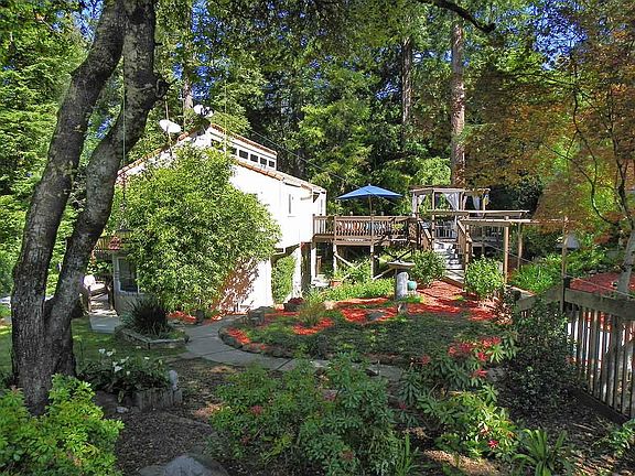 Nestled among the redwood trees off Summit Road, this private home is situated on a resort-like lot. Driving through the stately entrance leads you into a large parking area with a two-car detached garage and front deck with trellis. There are wrap-around decks on every room; an abundance of windows throughout the home help to bring nature in. With over 3,000 bulb plants, a bamboo grove, and pathways, there are many places to sit, enjoy, and relax the surrounding natural beauty. Come home to this oasis.