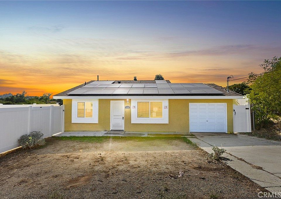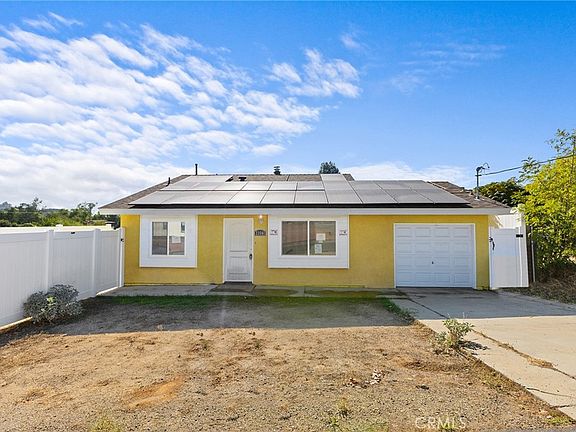23561 Clara Place, Canyon Lake CA 92587 — a beautifully updated, energy-efficient single-story home featuring solar panels, EV charger, and a fully fenced yard for privacy. This move-in-ready residence blends modern design with low-maintenance living. Inside, the open floor plan showcases elegant porcelain marble-look tile flooring, white shaker cabinetry, quartz countertops, and a spacious center island kitchen—perfect for entertaining. The bright living area includes a brick fireplace and crown molding for timeless style. Enjoy an expansive backyard with multiple patios, mature shade tree, and a finished storage shed with windows and power—ideal for a workshop, gym, or home office. The property also offers a one-car garage equipped with a Level 2 EV charging station and ample driveway parking. This home is powered by solar energy, helping lower utility costs, and located minutes from Canyon Lake’s private parks, schools, and shopping. With its modern upgrades and efficient systems, 23561 Clara Pl is the perfect balance of comfort, sustainability, and California lifestyle.