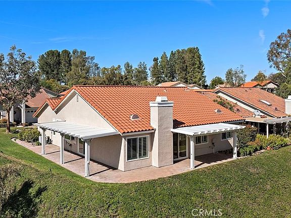 FABULOUS LOCATION! END of CUL-DE-SAC and ELEVATED on a BLUFF that grants you SERENE VIEWS to both the South and the East with no immediate neighbors in either direction. Enjoy PRIVACY and the QUIET, INSIDE-TRACT LOCATION! Soft VIEWS draw your attention from the kitchen, dining area, family room and the 3rd bedroom that is currently designed as an office or den. Step outside from either of your two sliding glass doors onto the open, wrap around patios, into the perfect California climate and enjoy sweeping views! Fully COVERED PATIOS are thoughtfully upgraded with PAVERS, CEILING FANS, hook-up for a propane BARBEQUE, automated IRRIGATION for your garden and electric outlets for whatever it is you desire! INSIDE: enjoy the REMODELED KITCHEN, open to the living and dining area and boasting over 100 DEGREE VIEWS, HIGH CEILINGS and SURROUND SOUND! Perfect for entertaining! There is an awesome GARDEN WINDOW in the kitchen where you can have your own indoor plants with indirect sunlight for most of the day! GRANITE COUNTER TOPS in Kitchen and both bathrooms. Kitchen has extra cabinetry. Both WALK-IN showers have been UPGRADED with beautiful tile and tile accents and CONTEMPORARY GLASS DOORS! CEILING FANS in the living room, bedrooms, den and even the master bathroom will keep you cool and save you money! 7 CEILING FANS IN ALL! Linen closets inside and a PLETHORA OF CABINETS and a pull down ladder to ATTIC STORAGE in the garage. Garage has two table surfaces for work or hobby activities. CENTRAL HEATING AND AIR CONDITIONING in great condition. Private washer & Dryer hook-ups. Includes MISSION VIEJO LAKE MEMBERSHIP with swimming, boating, fishing, picnic areas, free concerts and more! Full access to all Casta del Sol amenities including two heated pools & spas, gym, outdoor cooking area, tennis and pickle ball courts, Lawn bowling, golf chipping area, craft classes, horse shoe toss, shuffleboard, billiards, cards room, library, Heritage Garden 4 acres with WALKING PATHS, fire pits, COMMUNITY ROOM over-looking the golf course, personal GARDEN PLOTS and and many CLUBS to join,. Enjoy the security of guarded gate access. HOA covers trash pick up, front yard maintenance, exterior painting. The community boasts 484 acres of mature trees and tranquil hills. Oso Creek Golf course is right outside the gates! Low property taxes, no mello roos and affordable HOA dues.