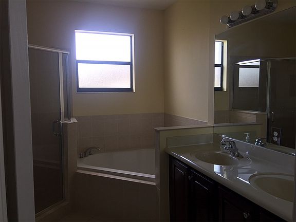 Beautiful 4 Bedrooms 2 1/2 Bathrooms, Formal living and dining plus family room opens up to the kitchen upgraded Large open custom kitchen with granite counter tops, wood cabinets, crown molding. Dual sink in the master bathroom with separate tub and shower, oversized master bedroom with tall tray ceilings. Tiled first floor wooden staircase and carpeted bedrooms. Home is equipped with water filtration system. Large back yard with privacy fencing. 2 car garage. Community has 24hr security, Pool, Gym and much much more. Application fee of $ 45 per adult is REQUIRED for screening. No Section 8