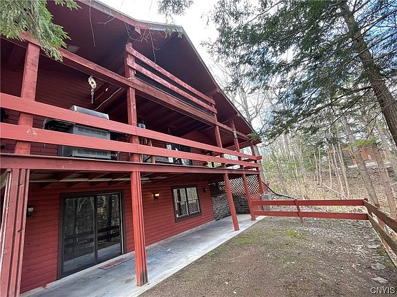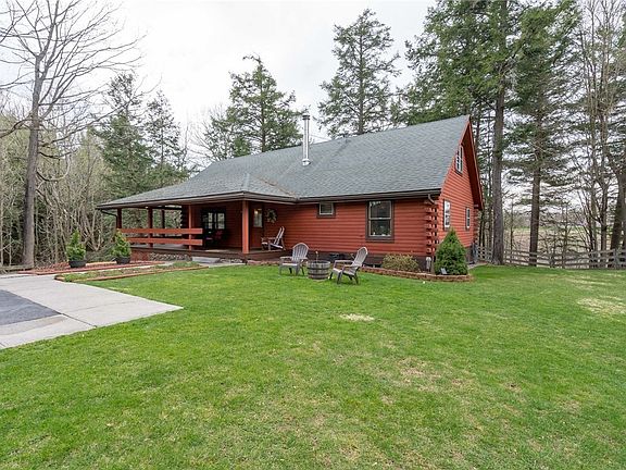 GORGEOUS LOG HOME!!! You’ll feel like you’re miles away from civilization in this log home tucked away in the trees. Yet you’re just minutes away from Watertown, General Brown Schools, and a short commute to Fort Drum. Beautiful open concept living/dining/kitchen area with amazing views. The kitchen has stainless appliances, solid surface countertops, and breakfast bar seating. Settle in for a cozy winter night by the wood stove, or head out onto the wrap around deck for those warm summer nights. On the main level you’ll find two bedrooms and a full bathroom. Upstairs there is another bedroom, full bath, and a primary bedroom with huge closet and a balcony with great views. The finished basement has a workout room, laundry area, and a huge bonus room with projection screen area. Items in basement area are negotiable and may possibly stay. The huge pole barn across the road has more than enough room to store all your extras. There’s also a storage shed, tree house, and two car garage. Wow! All this and at a fabulous price! This home is immaculately maintained and ready for a new owner. Call or text today.
