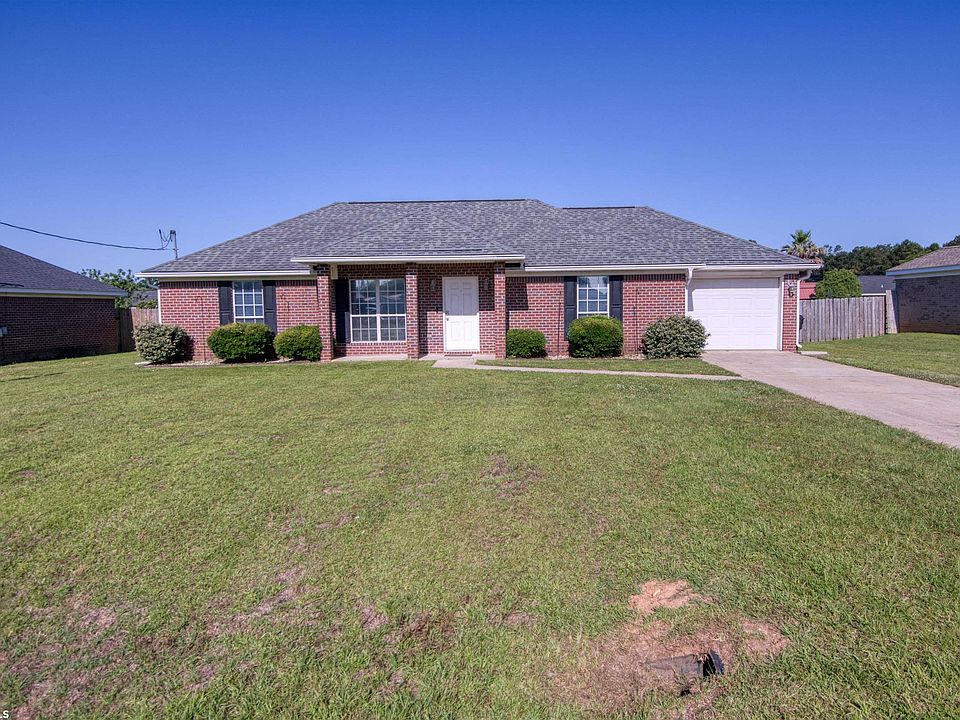 3 Bedroom 2 bath brick home with split floor plan large yard with a large concrete patio in a quiet neighborhood. Conveniently located in central Baldwin county. Approximately 30 minutes from the beach, Pensacola, Eastern Shore and Mobile making this home close to shopping, dining and all of the activities in the area. New floors in 2020, New roof 2017, New A/C 2021, gutters added in 2022. All new appliances in 2023. Buyer or buyers agent responsible for verifying all measurements.