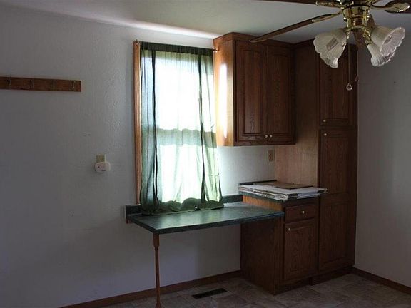 Oak kitchen cabinets have been updated, offering pull out shelves & lighting under them. Microwave & freezer stay. Laundry is on the main floor. 100 amp CBs. Hot Water heater new January 2013. AC new 2000. Drinking Water Filter. Covered exterior gutters. Front Deck: 25x5. 12x10 shed sided & roofed in 2011. Situated on 6.24 acres.