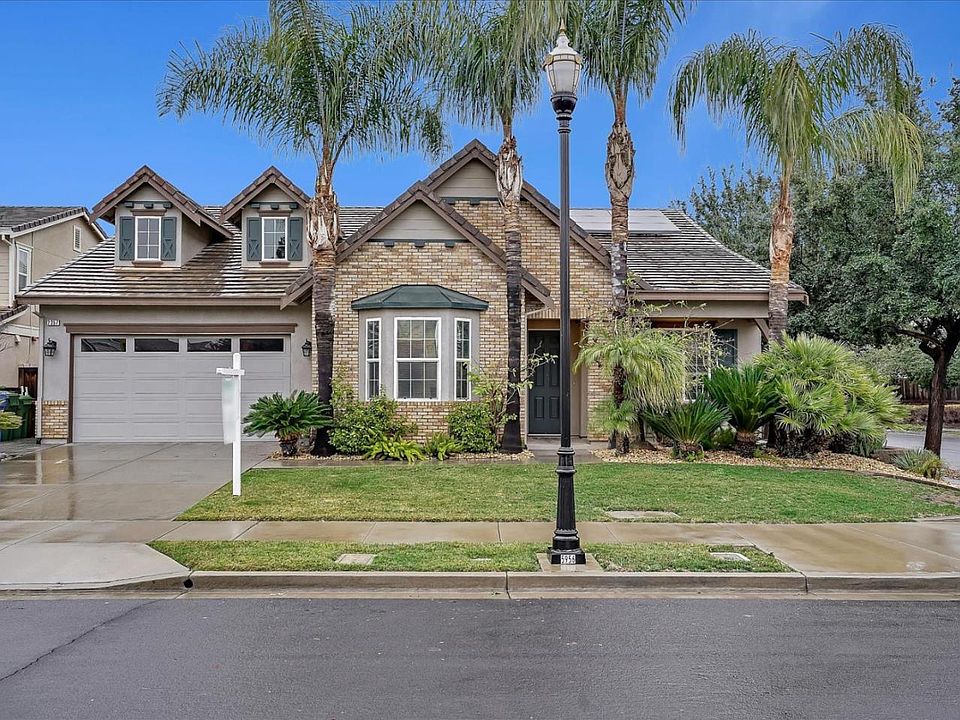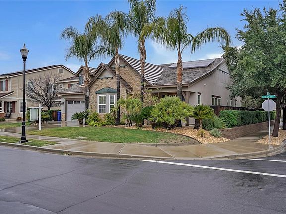 Enjoy resort-style living in this highly sought after, single-story floor plan that sits on an oversized (10,000+ SF) corner lot. Spacious 2,608 SF home offers 4 bedrooms & 3 bathrooms. Primary suite features extra large walk-in closet, soaking tub, spa-like stall shower, dual sinks + vanity area. Additional en-suite bedroom is perfect for guests. Gourmet kitchen includes: Thermador appliances, double oven, Bosch dishwasher, newer LG refrigerator, granite countertops w/ stylish custom cut edging around the extended island. Kitchen opens to family room w/ gas fireplace & access to backyard oasis for easy entertaining. Functional floor plan includes: generous laundry room, formal dining & living room, 3-car tandem garage. Seller upgrades include: retaining wall, stamped concrete & drainage, recently painted interior/exterior, newer HVAC. Drought friendly hardscape, mature landscape (palm tress, clumping bamboo & fruit trees), & soothing water fountain creates a backyard sanctuary.