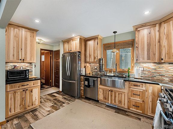 This condomium has been thoughtfully updated and remodeled. Not only is the kitchen remodeled and gorgeous but the main bedroom suite bathroom has also been remodeled. The windows have been replaced, the electric has been updated and the deck has been extended enhancing your outside living area. The 2nd bedroom is in the lower level with beautifully remodeled 3/4 bath. Completing the lower level you will also find the laundry room. Please note that the attached garage is used by the HOA maintenance person for keeping equipment. The garage space for #50 is across the driveway on the end. Hiwan Hearths is a highly coveted area located on the Hiwan Golf Course in north Evergreen. Water and sewer are public. The exterior of the building is maintained by the HOA as are the grounds. Nothing to do but enjoy.